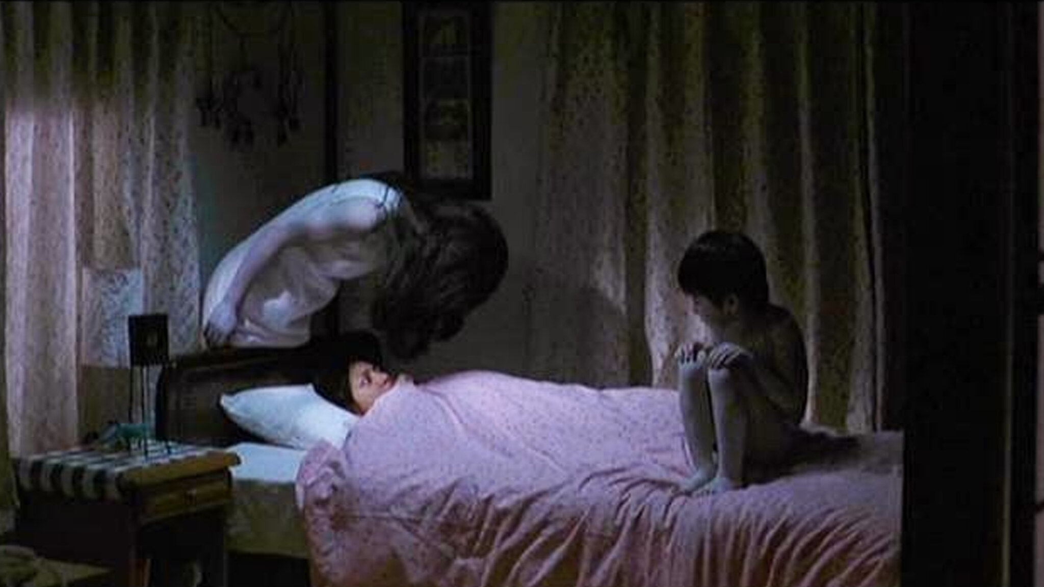 Pillaging the overseas celluloid cabinet really was the coin of the realm at the turn of the century, with any number of American remakes raking it in at the box office, but intellectual property theft was, in truth, more of a two-way street. 2004’s Sarah Michelle Gellar-vehicle The Grudge may owe its very existence to its Japanese counterpart, Ju-On: The Grudge, but the 2002 original is clearly built from imported parts. A ghost story set in contemporaneous Tokyo, writer/director Takashi Shimizu’s film has no hang-ups regarding plagiarism, borrowing liberally from The Exorcist, Poltergeist, and The Amityville Horror on both narrative and cosmetic terms. The Tokunaga family’s home is fitted with the same creaking floorboards and dimly-lit hallways to which U.S. audiences had become accustomed, and neither the ambiently menacing score nor cavalcade of jump scares show any desire to fix what isn’t broken. If you’re looking for something novel, the structure here will have to make do.